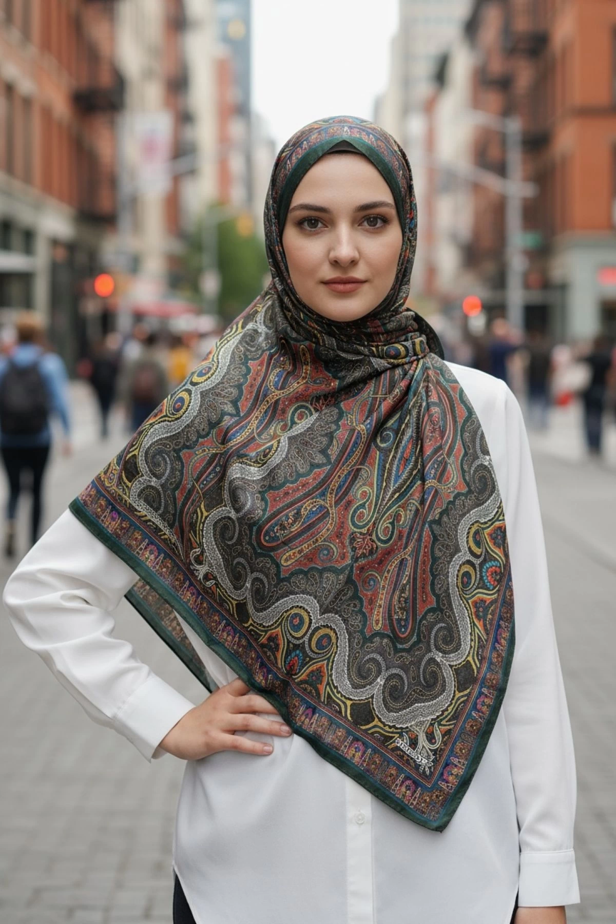 Kırmızı, altın, gri ve pembe tonların zarif geçişleriyle tasarlanan Arvena; paisley ve ornamental detaylarıyla her bakışta yeni bir hikâye fısıldar. Bahçede ya da şehirde, Arvena omuzlarınıza zarafeti bırakır. Hafif dokusu ve akışkan formu sayesinde gün boyu konfor sağlar.