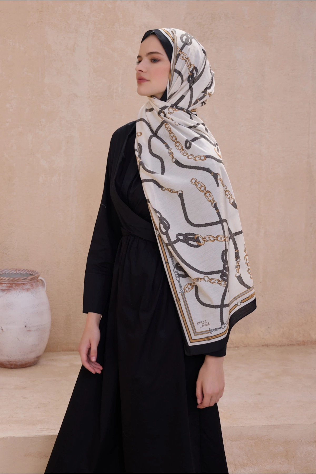 Belli Fresh Modal Şal 5 Zincir Desen - Ekru-Siyah