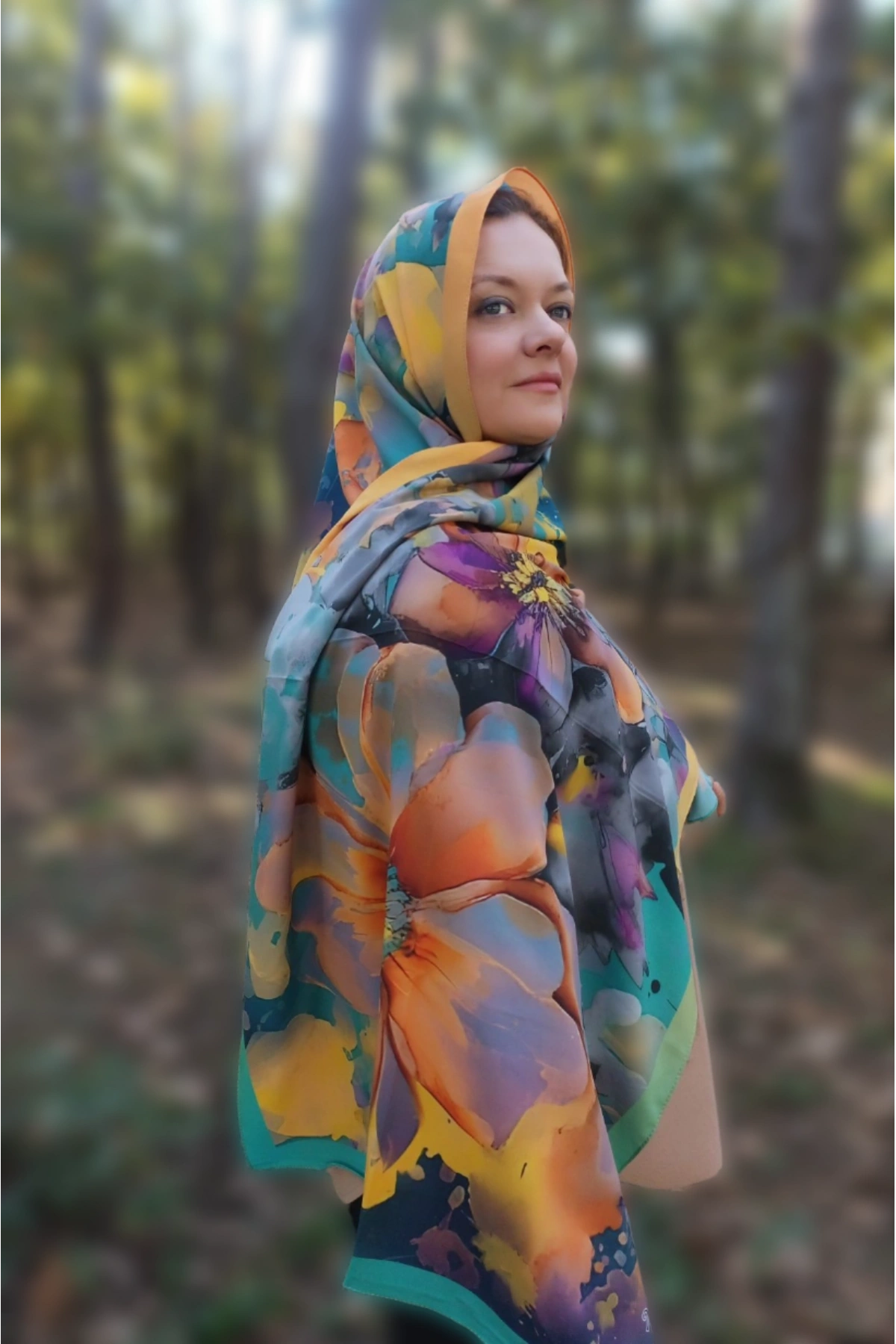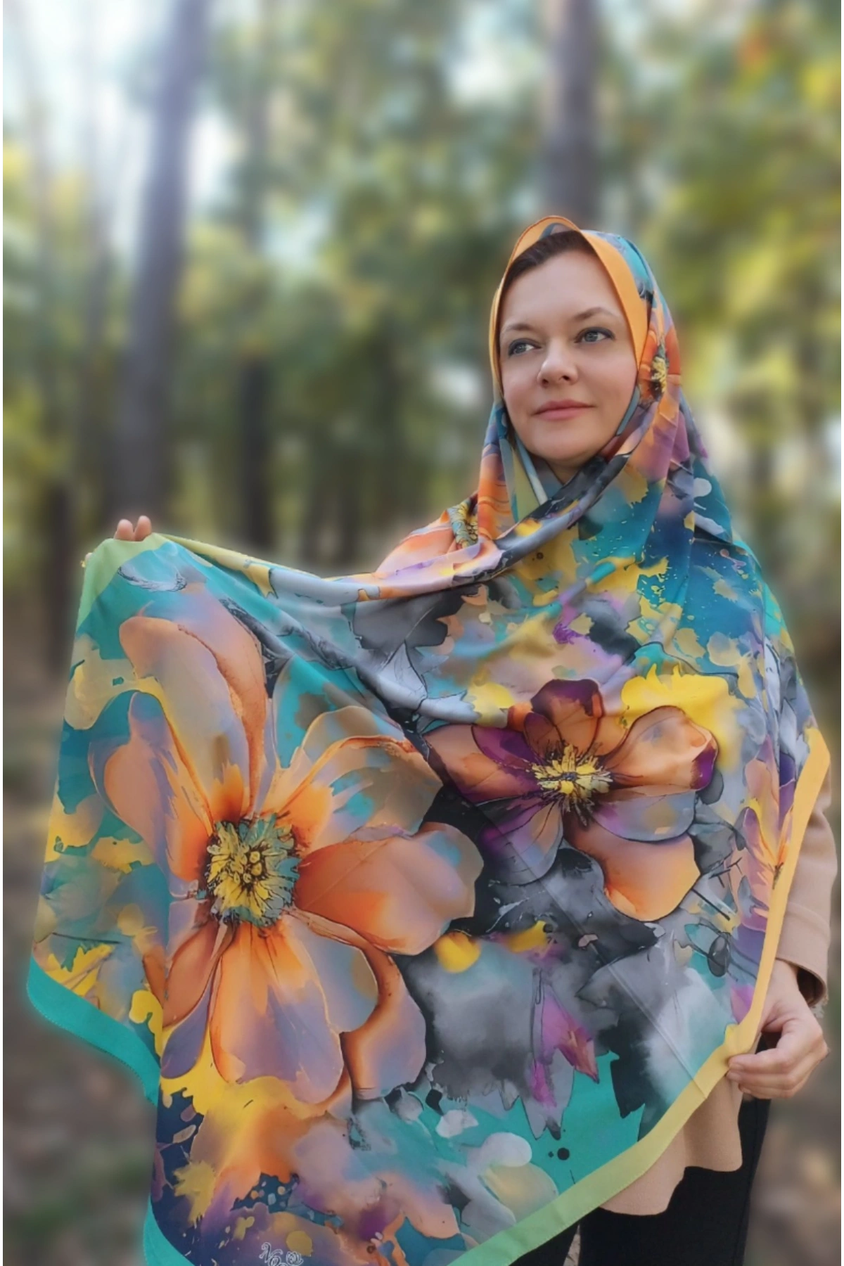 Büyük floral desenleri ve akışkan geçişleriyle hem enerjik hem zarif bir duruş sunar.