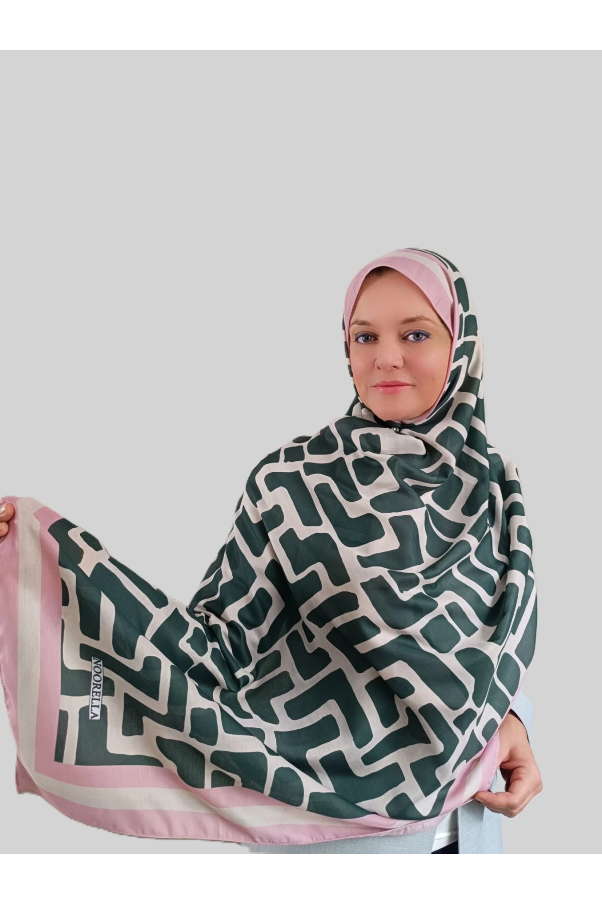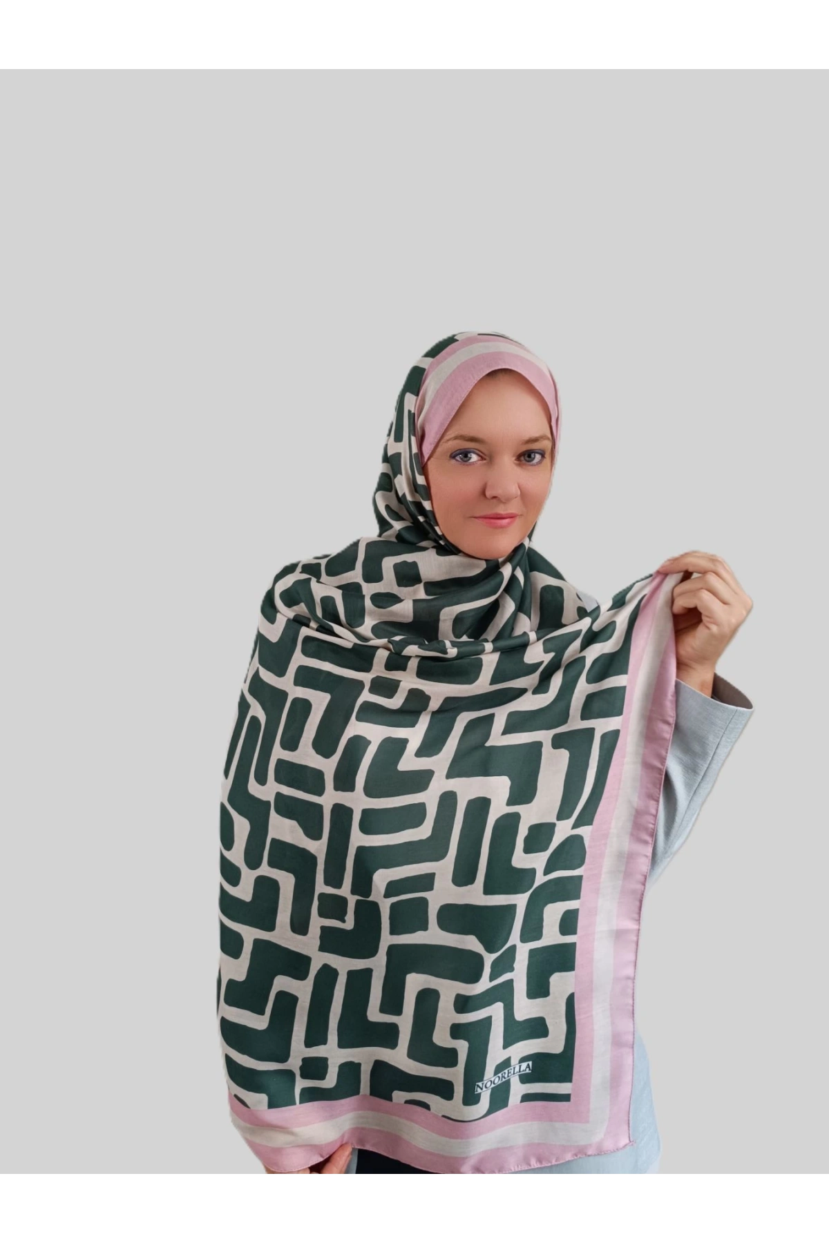 Mira, modern geometrik motifleriyle şehirli ve zamansız bir stil sunar. Beyaz-siyah desenlerin ritmik akışı, lacivert ve mavi kenarlarla dengelenir. Hafif dokusu ve akışkan formu sayesinde gün boyu konfor sağlar; her kıvrımında özgün bir ifade taşır. Hem sade kombinlere hareket katar hem de cesur stilleri tamamlar.