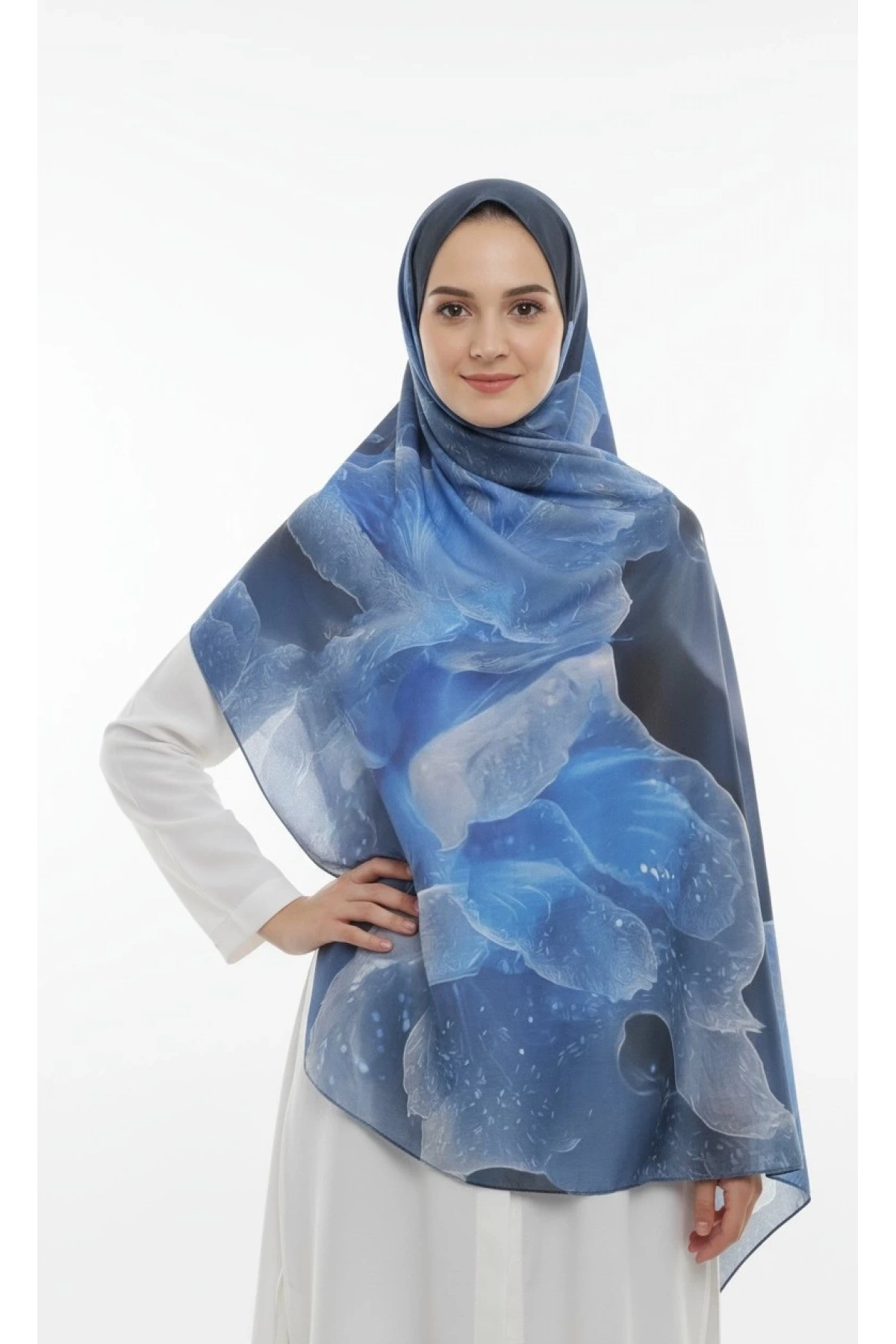 Mavi ve gri tonlarda büyük floral detaylarla tasarlanan Mireya; gerçekçi çiçek çizimleriyle hem şiirsel hem sofistike bir duruş sunar. Beyaz zeminle kontrast oluşturan bu desen, sade kombinlere güçlü bir dokunuş katar. Hafif dokusu ve akışkan yapısıyla gün boyu konfor sağlar.