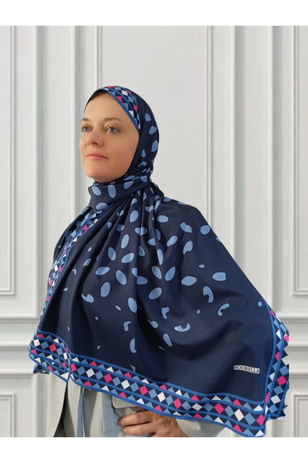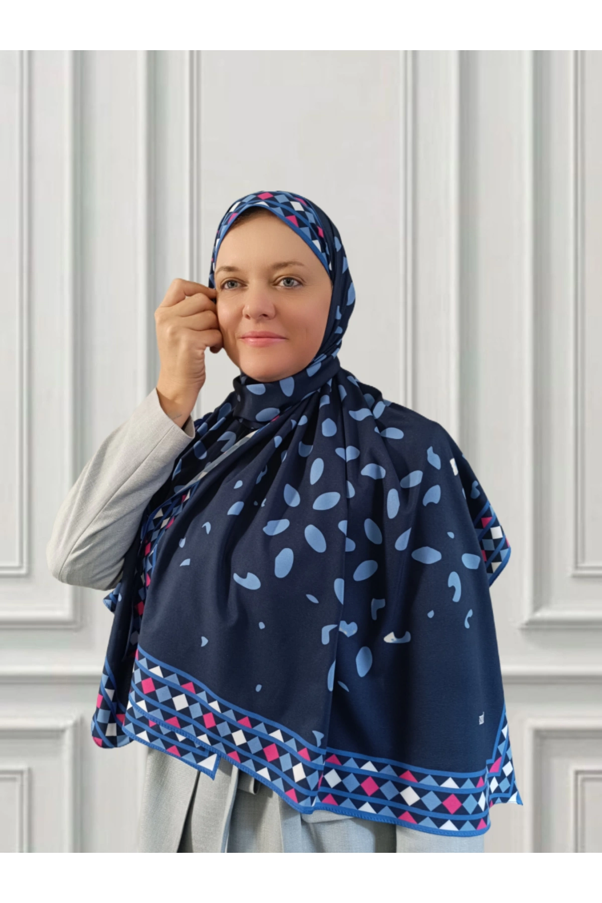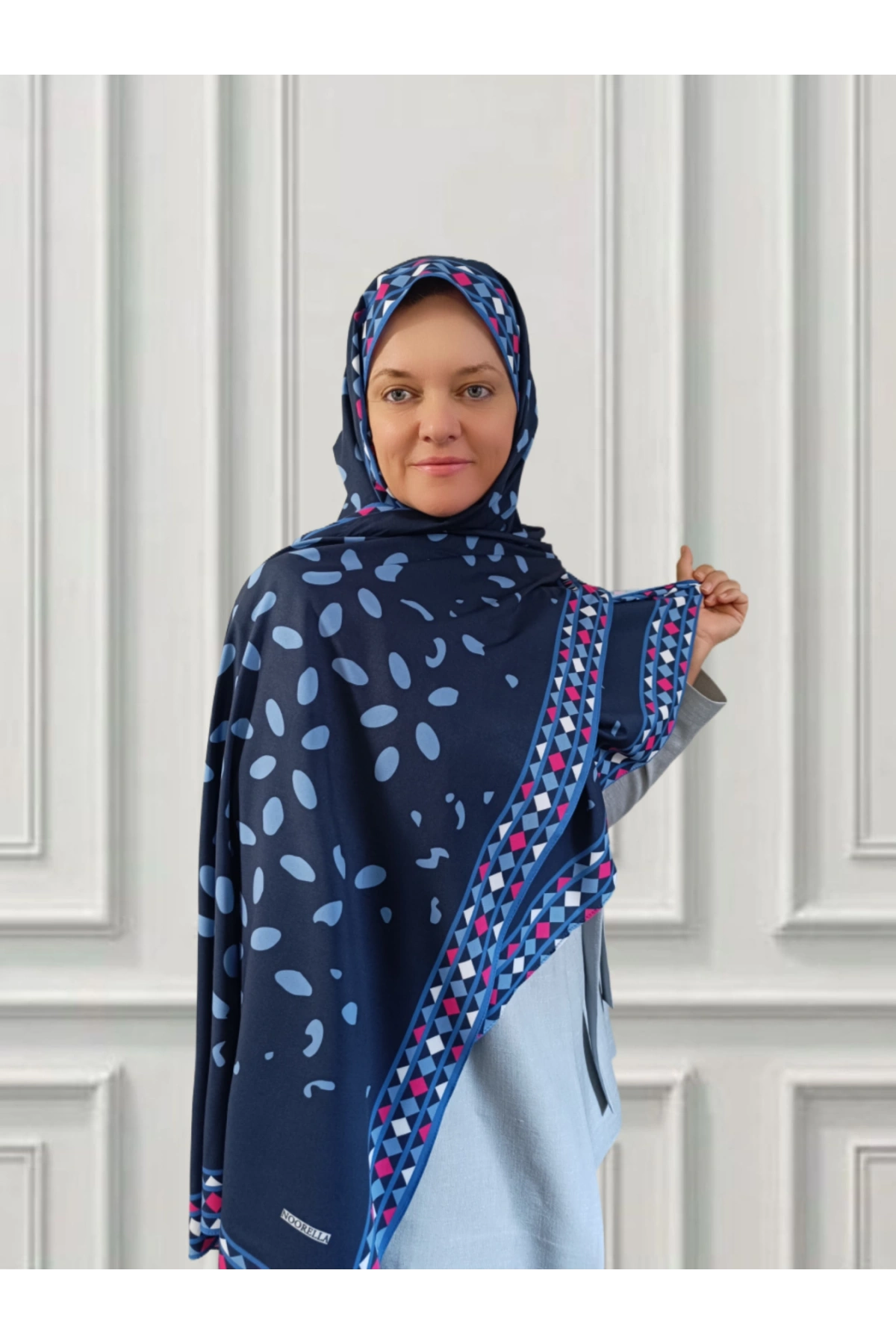 ? PERA – KOYU MAVİ ZEMİNLİ GEOMETRİK DESENLİ ŞAL