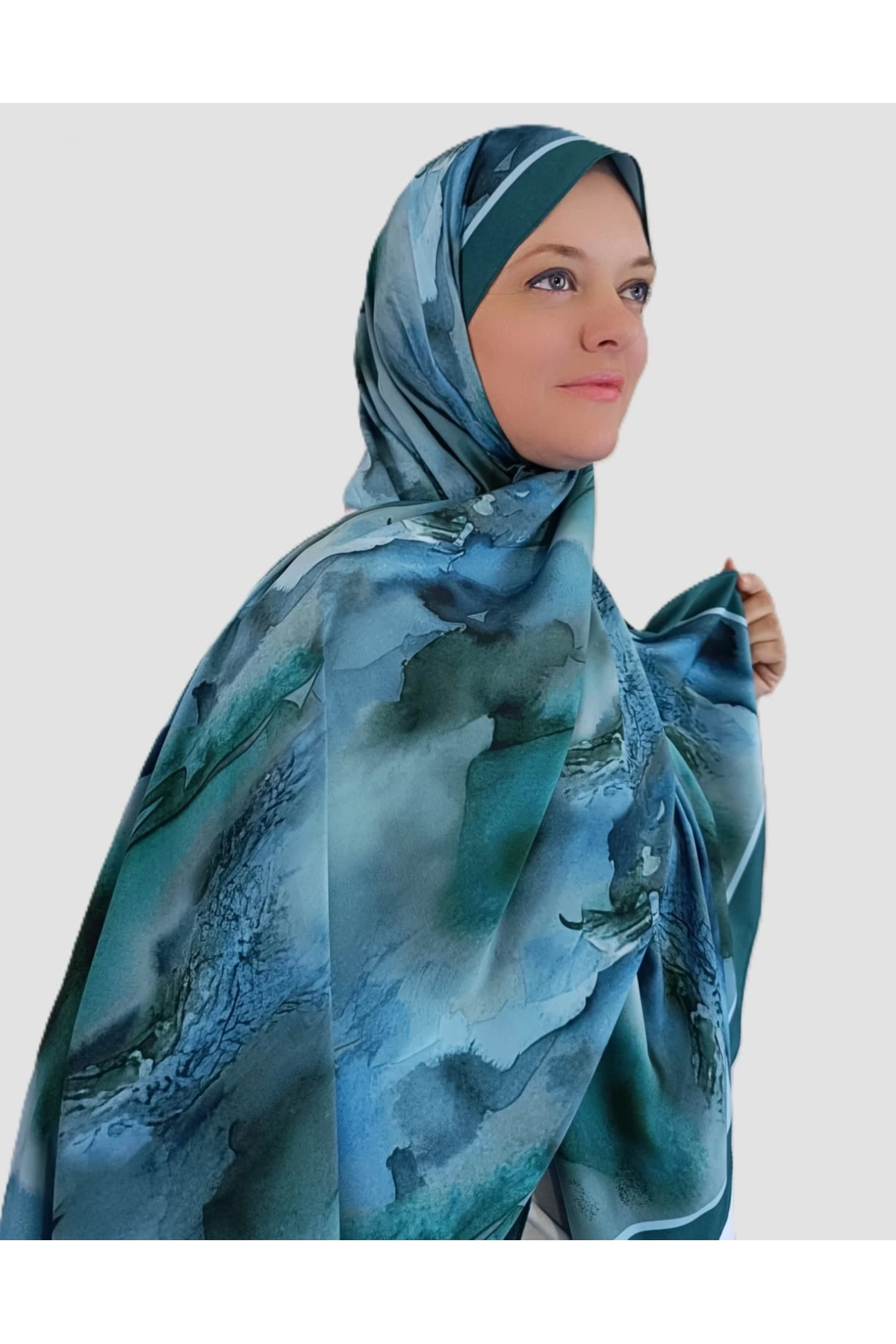 Soyut desenleriyle dikkat çeken Soma, mavi ve mint tonların zarif geçişiyle tasarlandı. Akışkan formu ve hafif dokusuyla hem günlük stilinize hem özel kombinlerinize eşlik eder. Her kıvrımında sıcaklık, her detayında özgünlük barındırır.