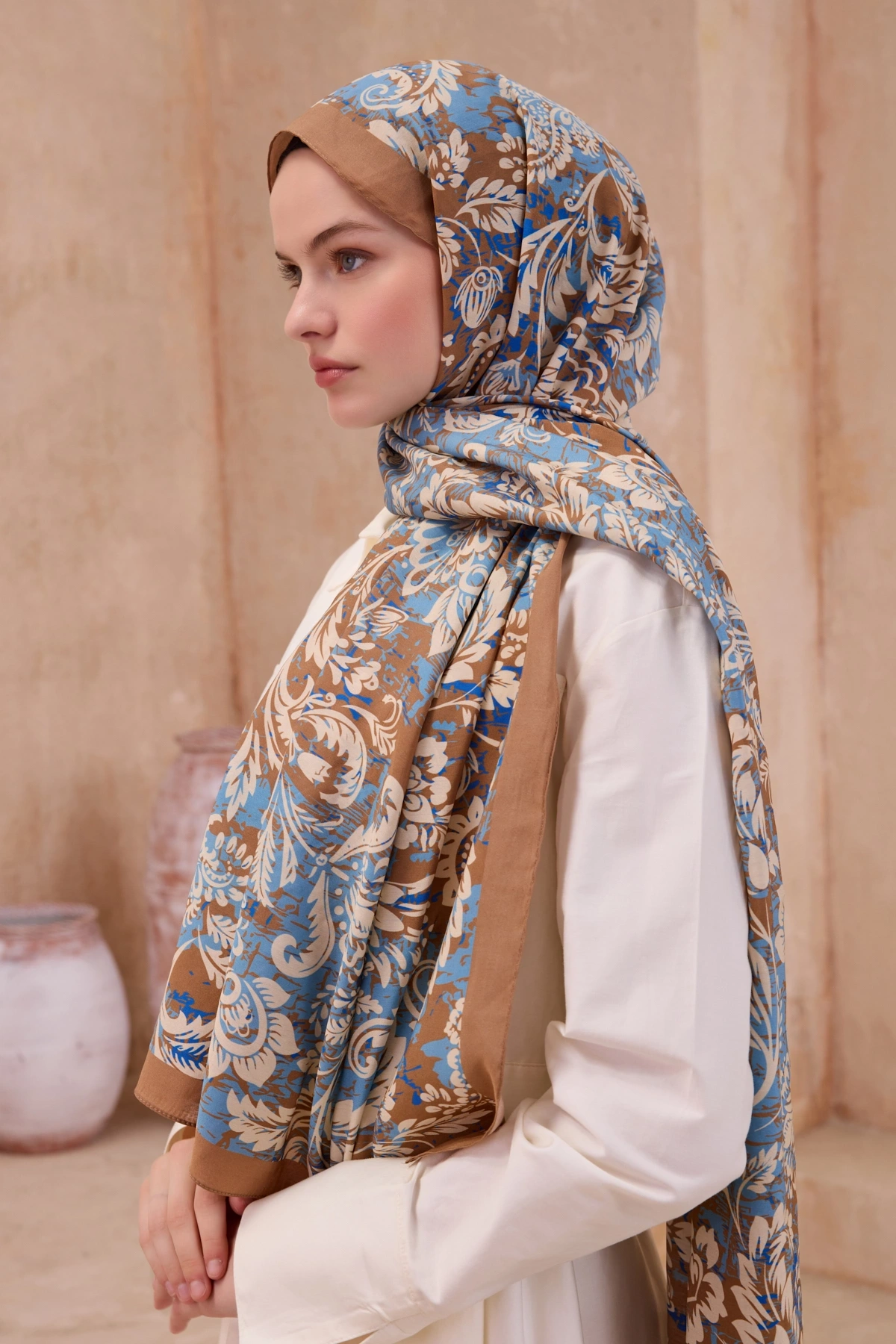Düz kıyafet + desenli şal: Kombine hareket ve dinamizm katmak için tercih edilir.