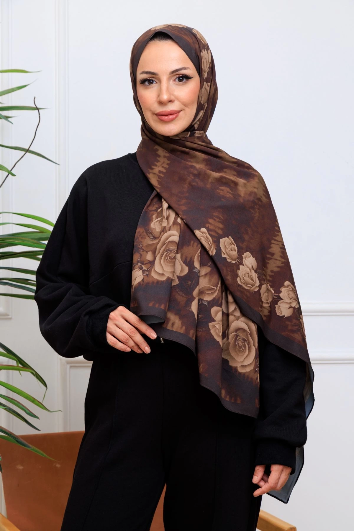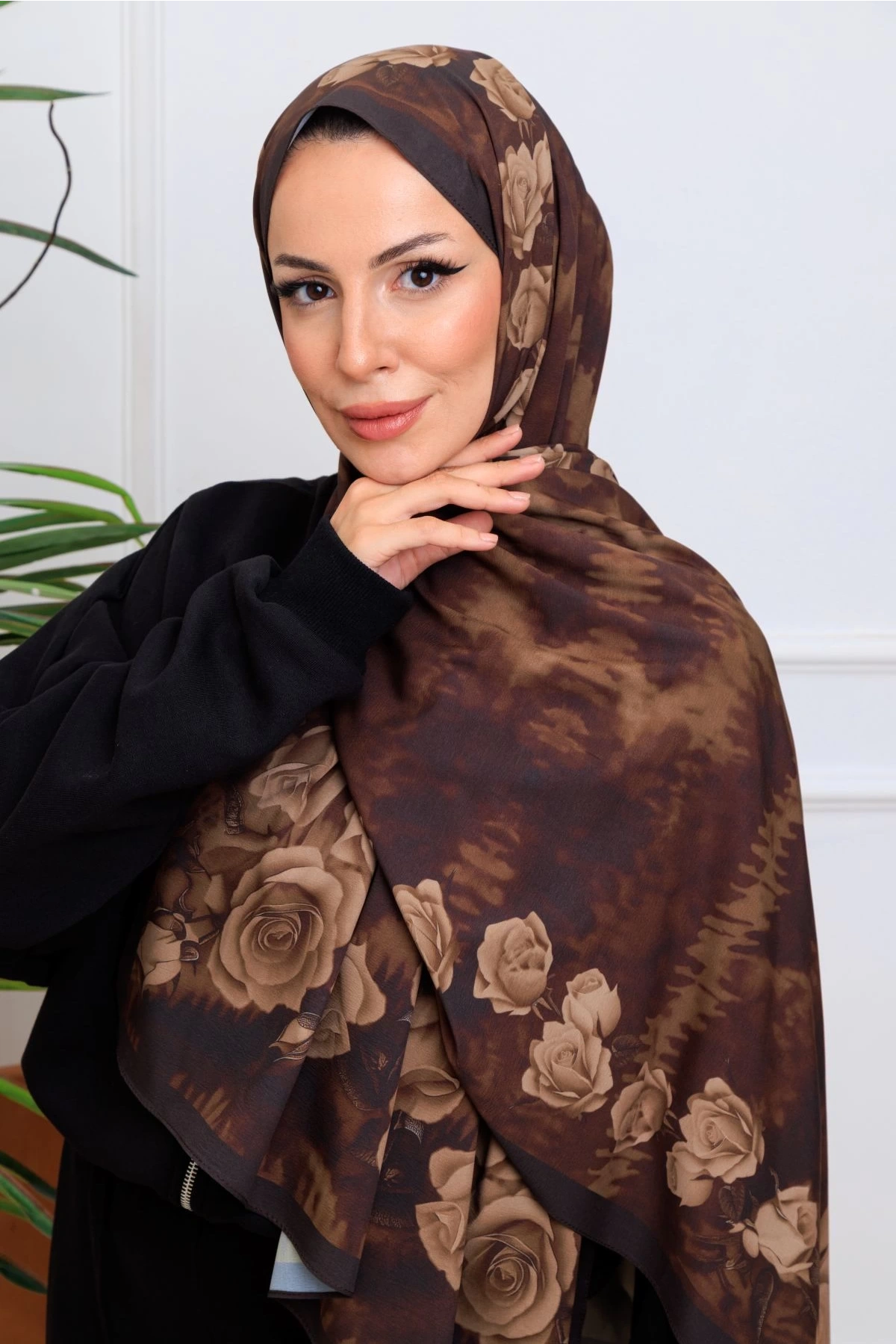 Koyu kahverengi zemin üzerine bej gül desenleriyle tasarlanan Velda, nostaljik bir zarafet sunar. Doğal tonları ve akışkan dokusuyla hem günlük stile hem özel kombinlere eşlik eder. Her detayında dinginlik, her kıvrımında estetik barındırır.