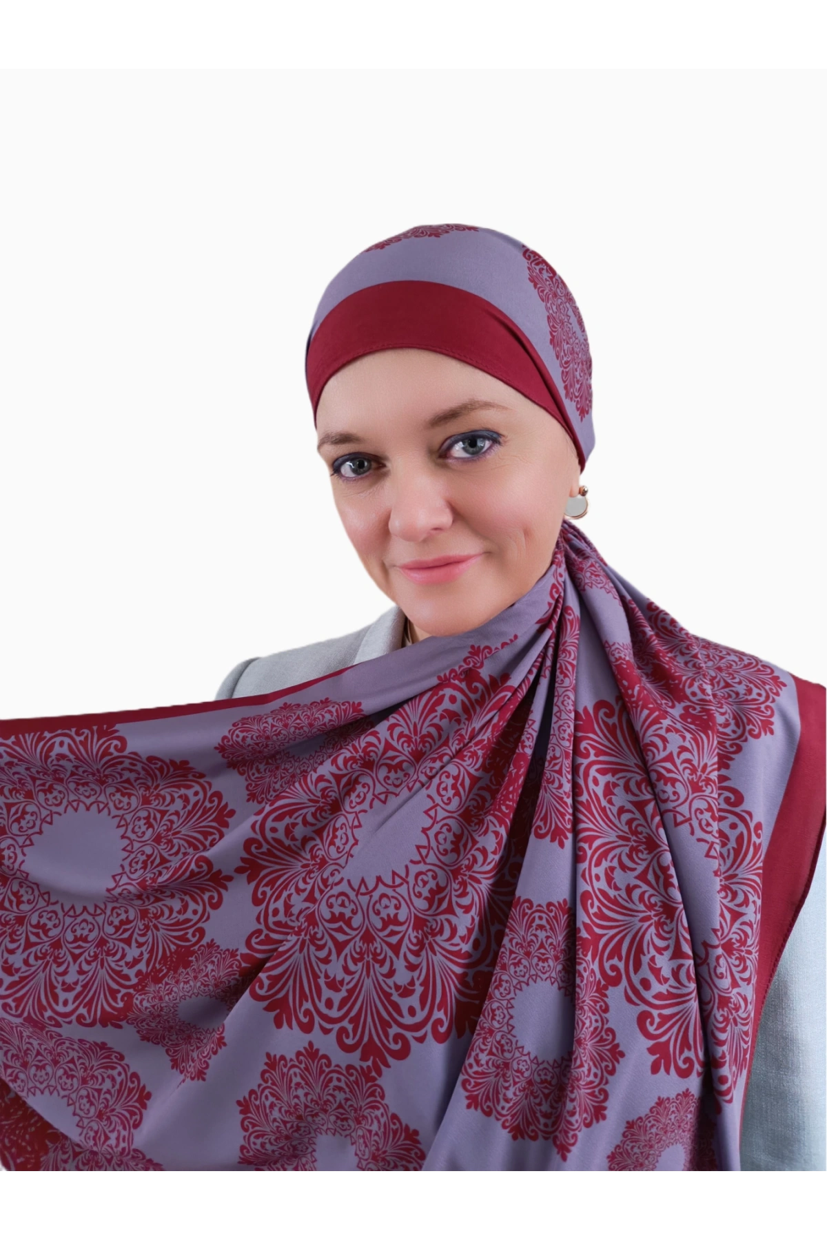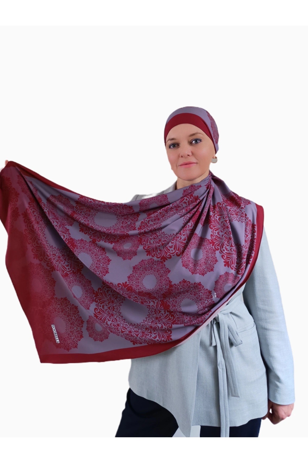 • Renk: Lila - Kırmızı geometrik desen, kırmızı kenar detaylı