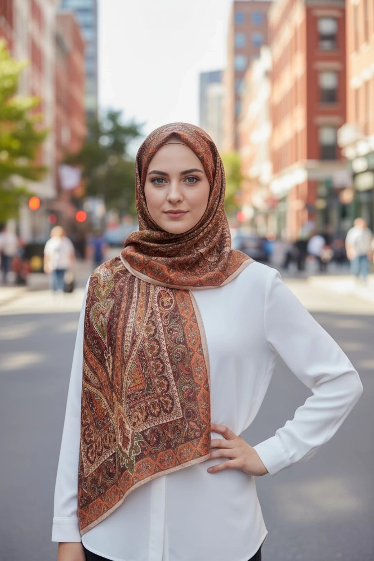 Turuncu, bej ve altın tonlarının iç içe geçtiği Yankı; paisley ve floral motifleriyle hem nostaljik hem çarpıcı bir stil sunar. Bahçenin sıcaklığıyla şehirli bir tavrı birleştiren bu desen, hem klasik hem özgün bir duruşa sahip. Hafif dokusu ve akışkan yapısıyla gün boyu konfor sağlar.