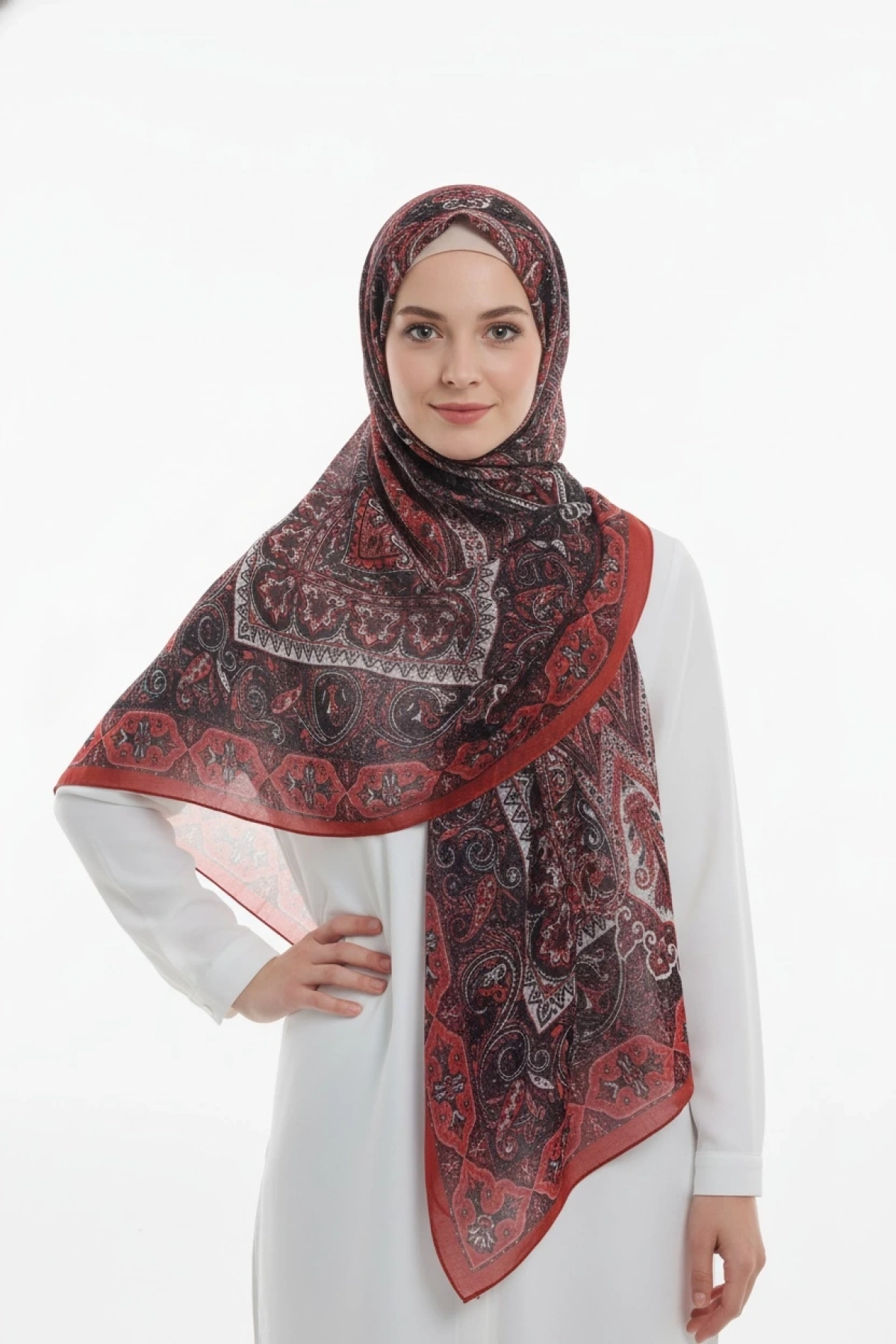 Turuncu, kırmızı ve altın tonlarının iç içe geçtiği Yankı; paisley ve floral motifleriyle hem nostaljik hem çarpıcı bir stil sunar. Bahçenin sıcaklığıyla şehirli bir tavrı birleştiren bu desen, hem klasik hem özgün bir duruşa sahip. Hafif dokusu ve akışkan yapısıyla gün boyu konfor sağlar.